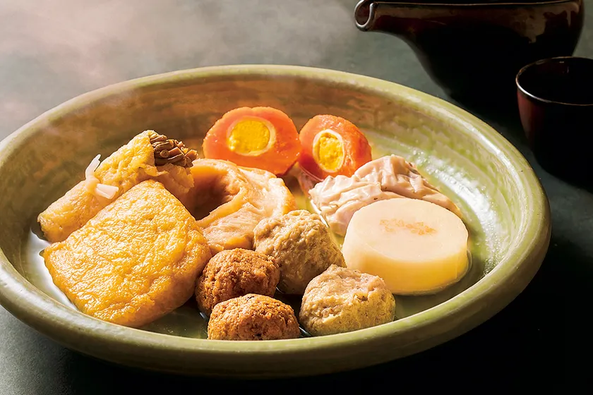 「赤玉おでん8種セット」(肉だんご×2・赤玉ばくだん 他計8種、だし500mL) 4,195円