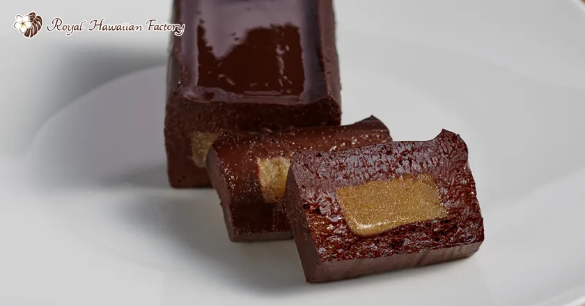 新商品の『ロイヤルハワイアンショコラ』は、“ハワイ伝統の食材を最新の技術で伝える”というコンセプトのもと、今までにない食感や味わいを追い求めた、究極のハワイアンガトーショコラとなっております。