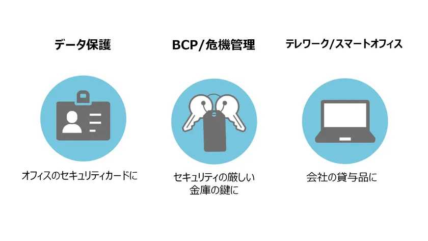 現在、多くの企業において従業員の在宅勤務を中心としたテレワークによる働き方が主流になりつつあります。社員が会社から離れた場所で仕事をすることで発生するであろうインシデントを未然に防ぐため、データ保護、BCP/危機管理、などの観点からもオフィスの物品をIoT化することは持ち出しによって生じる紛失を防止するだけでなく、物品の一元管理が可能に、さらに紛失による事業へのあらゆるリスクと損失の回避につながります。