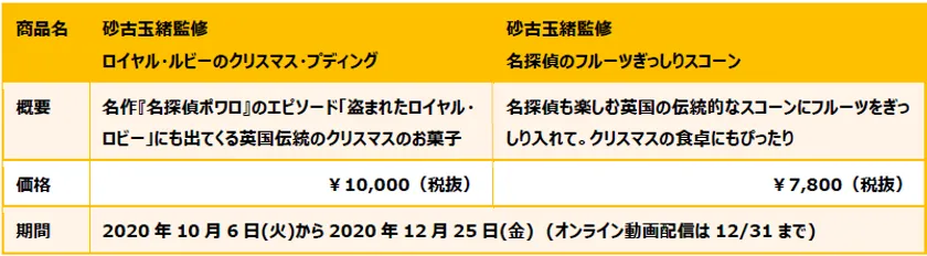 英国好きなら見逃せない!英国の大人気ドラマ『名探偵ポワロ』の名シーンとともに、本格的なお菓子作りができるスペシャルキット。『名探偵ポワロ』のエピソード、「盗まれたロイヤル・ルビー」からクリスマス・プディング、「葬儀を終えて」からスコーンをご紹介いたします。監修の砂古玉緒先生も『名探偵ポワロ』の大ファン!