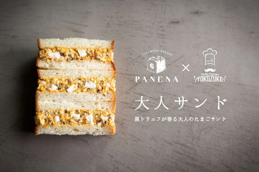 姉妹店である人気ベーカリー「タニロクベーカリー パネーナ」(株式会社ランタン、大阪市中央区谷町)とのコラボで生まれたこのたまごサンドは、同店の人気食パン「パン・ド・ミPANENA」を使用し、大人のためのサンドイッチとして開発されました。