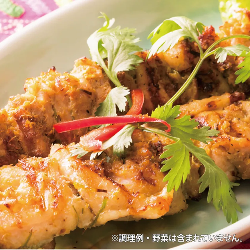 タイの定番料理「サテ」をグリーンカレー味に味付けして焼き上げました。
