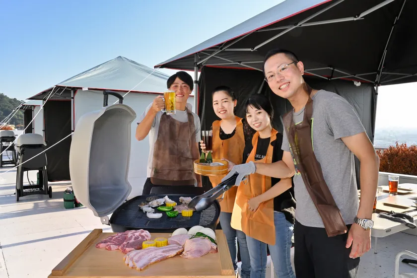 地上70階に相当する開放的な屋外テラスに、2~6名収容可能な5つのサイトを設置しております。多彩なBBQプランをご用意し、グリルは本場アメリカ製Weber(R)Q3200ガスグリルを使用しております。