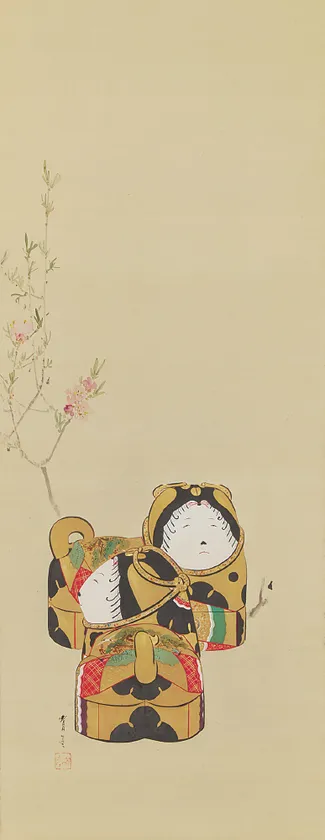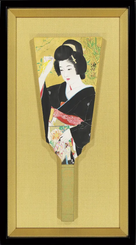羽子板 絹本 着色 共箱 額装 花柳章太郎旧蔵 東美鑑定証書