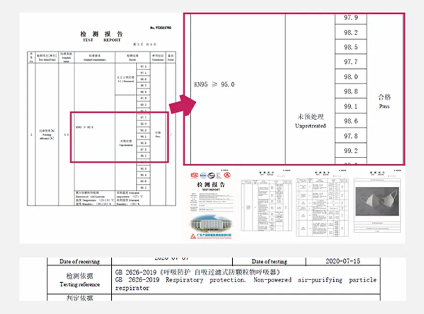 KN95規格検査に合格/新基準GB2626-2019をクリア