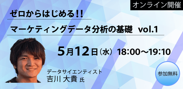 今回は、データサイエンティストの吉川大貴(よしかわだいき)氏を講師にお招きし、起業やビジネスを成功させるために重要なマーケティング分析を学ぶオンラインセミナーを開催します。「マーケティングとはなにか?」という基礎からデータ分析の方法までお聞きします。