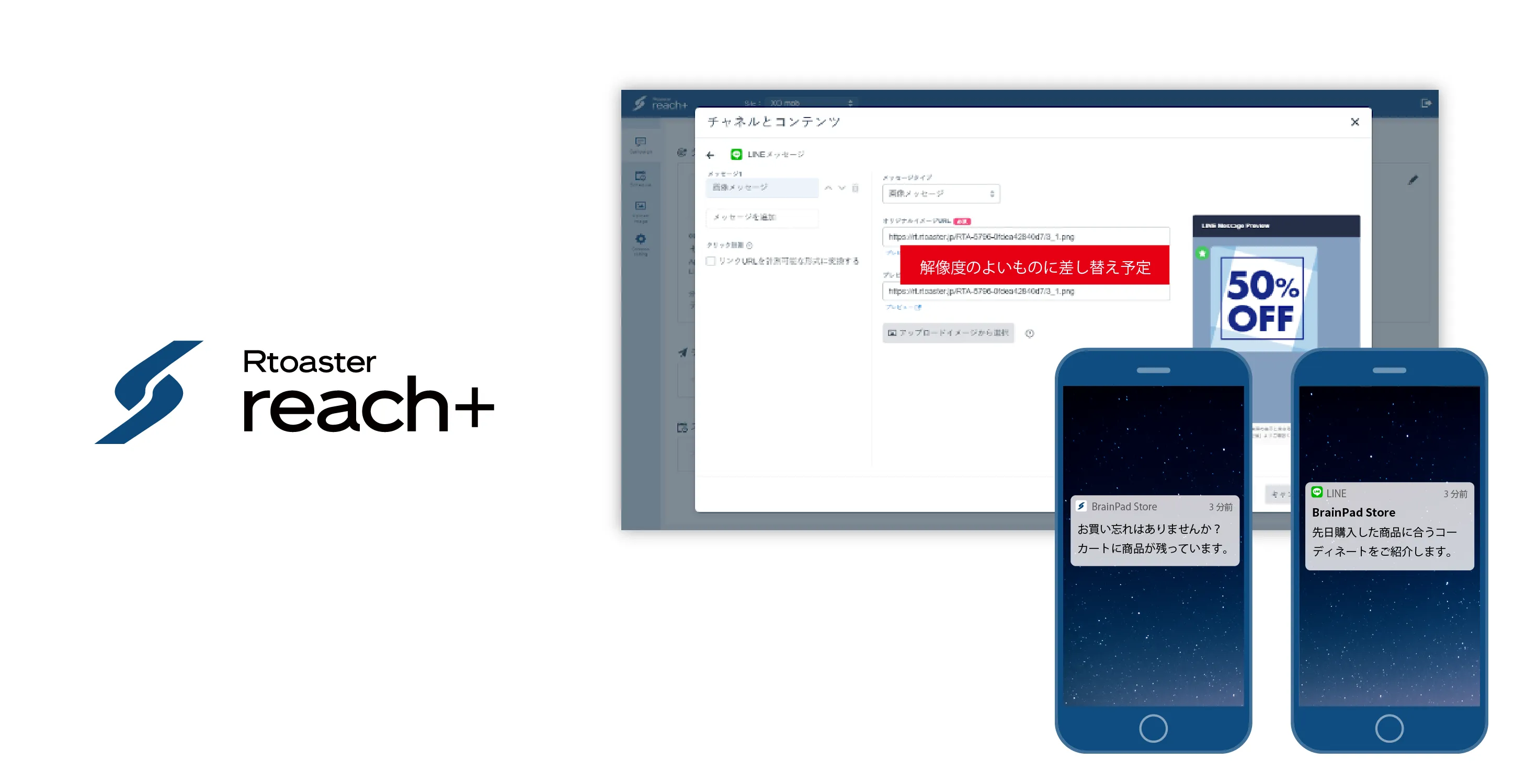 「Rtoaster reach+」は、増え続けるデバイス、チャネルに対応し、さまざまな顧客接点にて、ユーザーが欲しいと思ったタイミングで、最適なチャネルで良質なコンテンツを配信することにより、顧客体験を向上させ、LTV向上につなげるマルチチャネルメッセージサービスです。