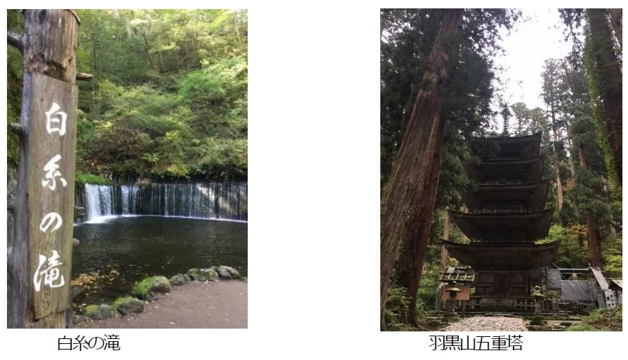 【2日目】ホテル --- 天童将棋むら天童タワー … 芭蕉庭園 --- 銀山温泉街散策 --- 白糸の滝ドライブイン --- 出羽三山神社 --- 庄内観光物産館 --- 鶴岡駅 ===<特急いなほ/普通車指定席>=== 新潟駅