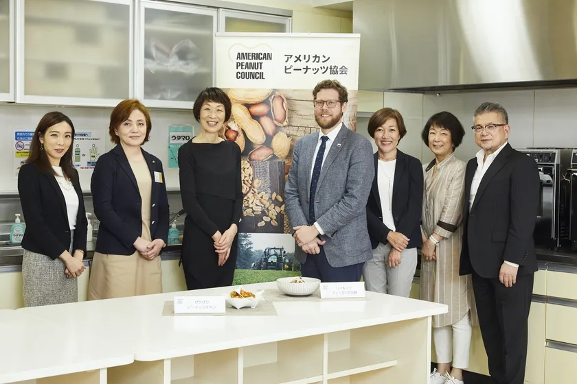 アメリカンピーナッツ協会 アカウントエグゼクティブ/岩崎裕美、株式会社ホームメイドクッキング 常務取締役/加藤美弥子氏、ファミリークッキングスクール 主宰/浜内千波氏、米国大使館農産物貿易事務所 副所長/バレット・バンパス氏、アメリカンピーナッツ協会 駐日代表/天野いず美、米国大使館農産物貿易事務所 マーケティングスペシャリスト/野口樹里氏、アメリカンピーナッツ協会 マーケティングコーディネーター/北澤幹一郎