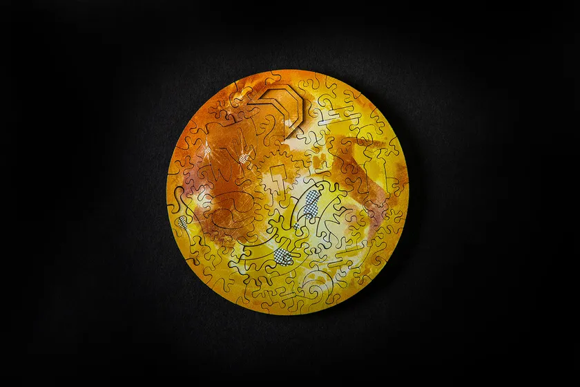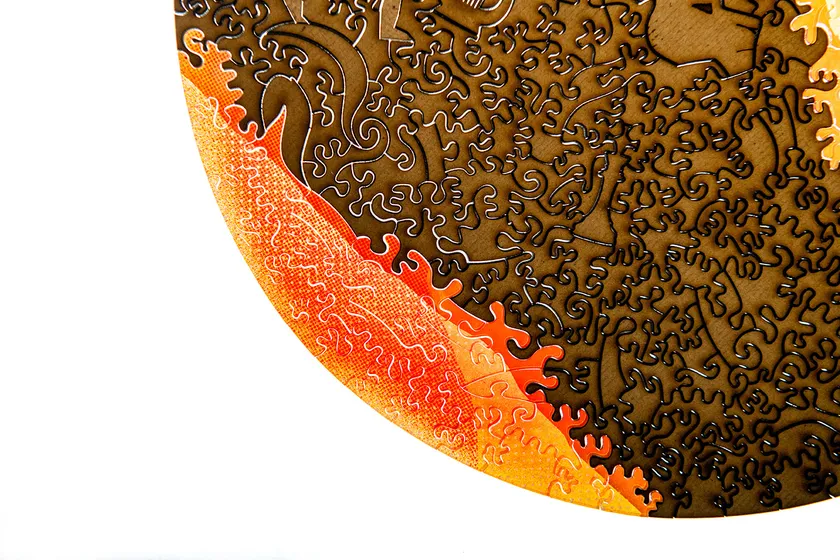 リラランテが提供する「宇宙の破片」は、太陽を含む、水星、金星、地球、月、火星、木星、土星、天王星、海王星、冥王星、計11惑星をデザインしたパズルです。通常のパズルとは違い、ピースが特殊な二酸化炭素レーザーを用いて高精密にカットされ、通常のパズルと比較して900倍時間がかかっているという、とにかく細かいパズルです。特殊な切り込みを行うので、丈夫で品質の良い素材を利用(アクリルと木材のピース)し、難易度の高いピース加工が可能で、パズル専門のYouTuberであるMr.Puzzle氏でさえも、最高難度の「太陽」の制作時間に約7時間を要したとのこと。難関をクリアした時の達成感こそ、このパズルの醍醐味と言えるでしょう。