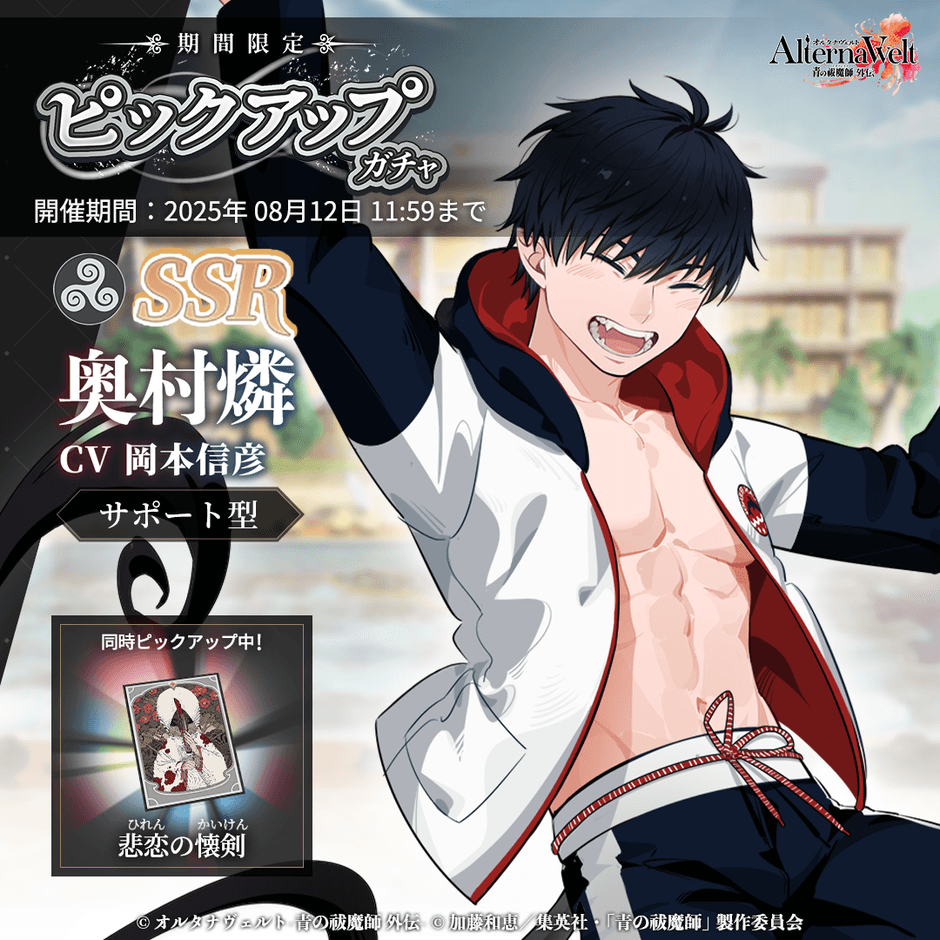 ゲーム『オルタナヴェルト -青の祓魔師 外伝-』、7月22日(火)よりSSR 奥村燐(水着)が期間限定ピックアップガチャに登場!