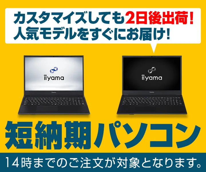 iiyama PCより、カスタマイズしても2日後出荷が可能な 『短納期パソコン』の販売開始!人気モデルをすぐにお届け!