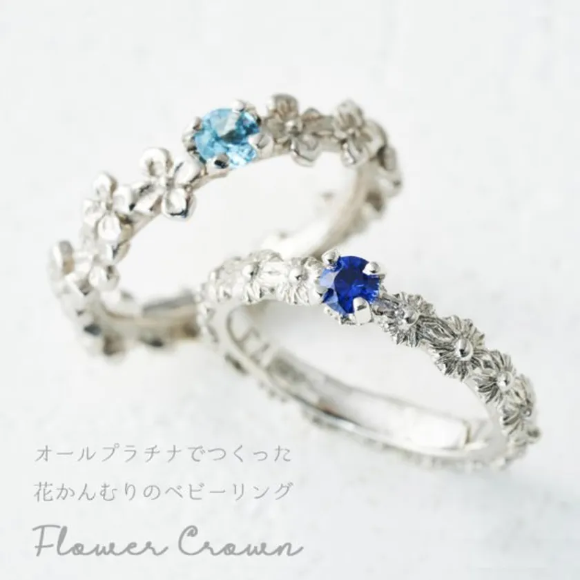 愛する赤ちゃんがこれからずっと幸せに生きて行けますように。そんな母親の願いを花かんむりのベビーリングにデザインしました。