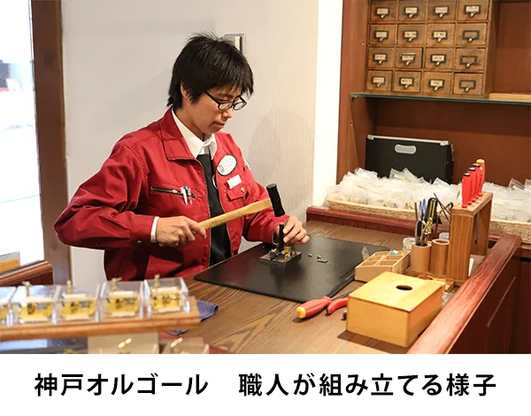 神戸オルゴールは、2009年7月より当館内で製作しているオリジナルブランドのオルゴールです。2013年には「神戸セレクション」に選定されるなど、新しい神戸ブランドとしても注目を集めました。