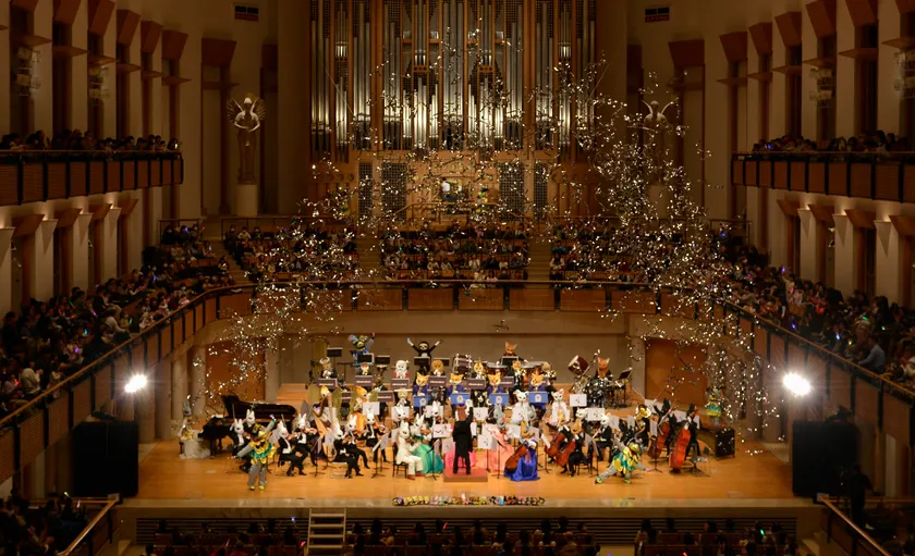 「弦うさぎ」(うさぎの弦楽四重奏)「サキソフォックス」(キツネのサックス四重奏)といった動物の仲間たちと行う、親子のためのコンサート「音楽の絵本」は、全国各地のホールで話題となり、海外公演も含め年間約150を数えます。2011年にはオーケストラ「ズーラシアンフィルハーモニー管弦楽団」も結成。これまでのコンサートから更に一歩踏み出し、慣れ親しんだ音楽をより交響的に紡ぐ「シンフォニック童謡」をテーマに展開。子どもたちのクラシック音楽への興味を一層高めています。