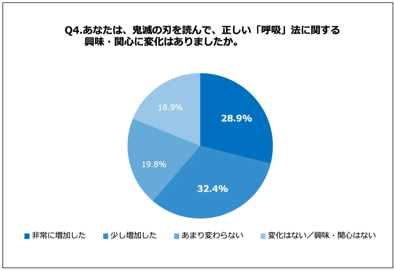 ■61.3%の人が、『鬼滅の刃』を読んで「正しい呼吸法」に関する興味・関心が増加したと回答