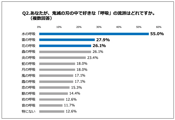 ■『鬼滅の刃』の中で最も人気のある「呼吸」は「水の呼吸」で55.0%!