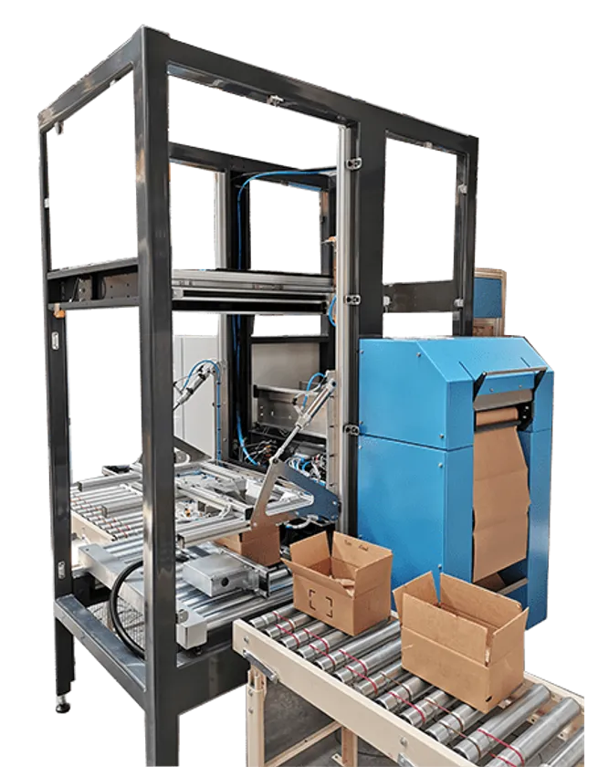 梱包自動化ソリューションの一つである、「Pad’it!」は、梱包ラインの効率を高める、特殊な自動梱包機です。高品質な紙緩衝材を直接箱にセットすることにより、輸送中の壊れやすい製品を保護します。箱の底サイズに合わせ、1時間あたり最大900箱に紙緩衝材を作成し、製品保護を改善し自動化します。消費材、美容・ヘルスケア、事務用品、グラフィックアート、電気/電子機器、工具・機器類など幅広い業界で使用されています。