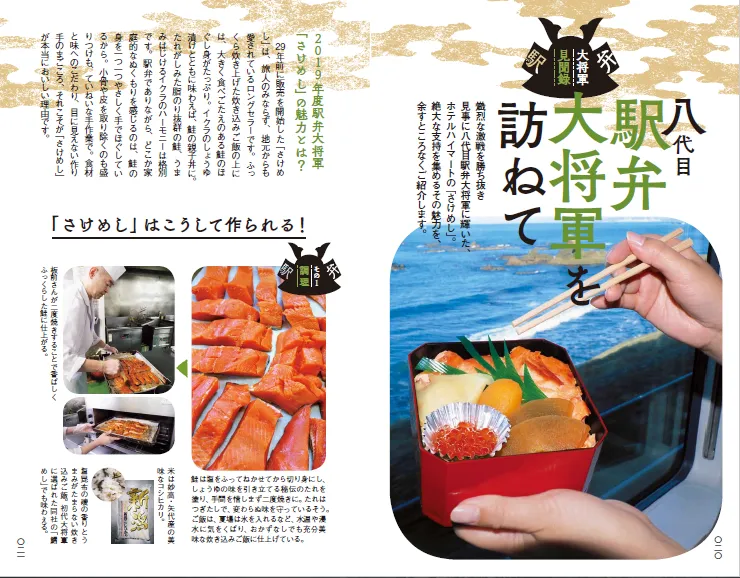 「駅弁味の陣」の歴史とともに、栄光を勝ち取ってきた歴代の「駅弁大将軍」の魅力を大公開! 昨年の大将軍「さけめし」を訪ねる旅では、駅弁づくりにかけるこだわりに、胸が熱くなること間違いなしです。