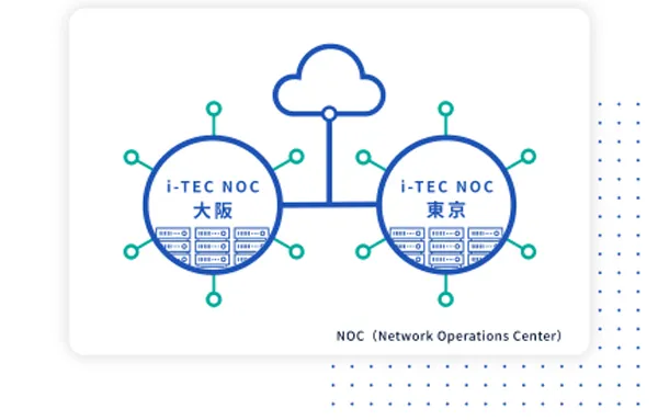 「i-TECクラウドコネクト」のバックボーンは、アイテック阪急阪神がインターネットサービスプロバイダとして構築した、複数拠点からなる大規模ネットワーク網を利用しています。これにより、お客様に安価で高品質な専用接続サービスをご提供します。