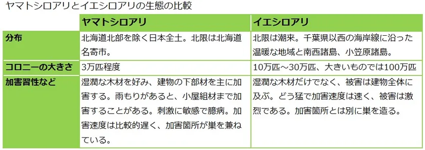 ヤマトシロアリとイエシロアリの生態の比較