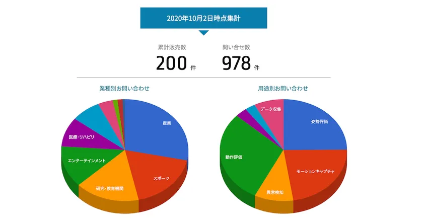 VisionPose(R)の販売先数が今月200社を突破しました。これもひとえに検討・導入頂いた企業様のお陰と心より感謝申し上げます。2018年11月から正式に販売を開始して2年あまり、SDK(Software Development Kit)ということで簡単に扱える商材ではなく、これを使って開発できる企業様も限られる中、地道に販売数を増やし、2020年10月でやっと200社に到達しました。