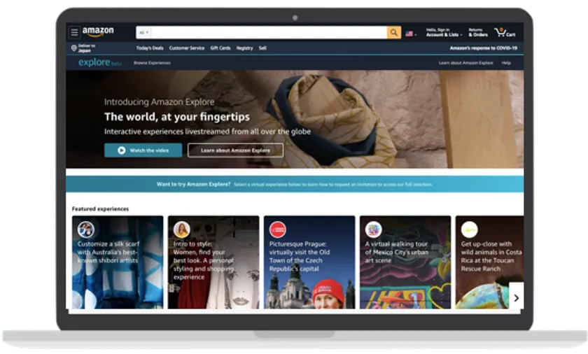 オンラインマーケットプレイス業界大手のAmazon社は2020年9月29日、「Amazon Explore」と名付けられた新しいライブ・バーチャル体験サービス(ベータ版)を開始しました。「Amazon Explore」は地元のツアーガイドがバーチャルでライブ動画を配信し、顧客は自宅に居ながらにして、遠く離れた目的地やユニークなアクティビティにバーチャルでアクセスすることができます。当社では、数ヶ月に及ぶテストを経て、今日のローンチまで到達しています。