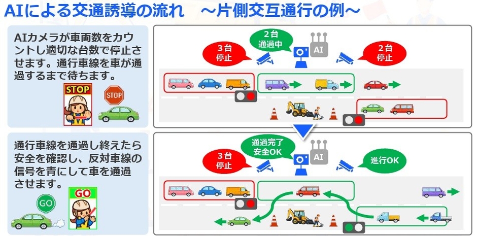 AIが交通状況をリアルタイムに判断 片側交互通行などの誘導を無人で行う交通誘導システム 「サテライトAI・交通誘導AIシステム ゆうどうくん」の提供を開始