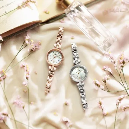 新作「ティアラスターコレクション」は、ケース上部にスワロフスキー(R)・クリスタルを配置しているのが特長です。ティアラのように輝くクリスタルに『この時計を身に着ける人の願いが叶いますように』という想いを込めました。華奢なブレスレットタイプのバンドは、アクセサリー感覚でオン・オフ問わずどんな場面でもご着用いただけるデザインです。バンドには工具を一切使わずにサイズ調整できる「ワンタッチアジャスト」を、ブランドで初めて採用しました。ご自身で簡単にサイズ調整することが可能なので、オンラインでの購入や贈り物にも適しています。