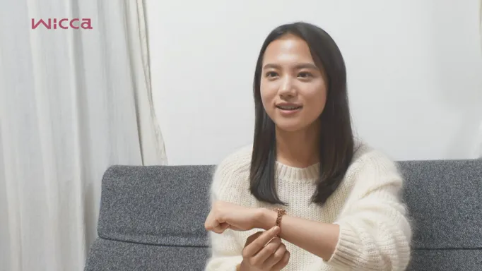 ものすごくかわいいデザインだなと思って。写真で見たときより実物で見た方がきらめいているといいますか、でもお上品な感じがして。今日いろんなファッションに合わせてwiccaの時計を付けたんですけど、どんなファッションにも合うデザインだなと思いました。