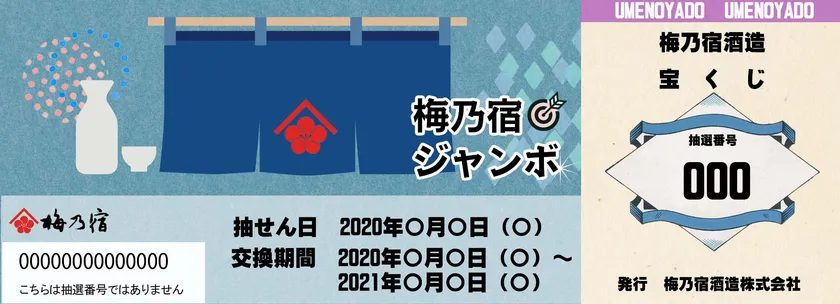 さらにお客様と一緒に盛り上がりたいという思いから、梅乃宿オリジナルの宝くじ「梅乃宿ジャンボ」を1セットにつき1枚同封させていただきます。はずれなしの上、1等は1斗樽が当たる豪華な抽選くじです。
