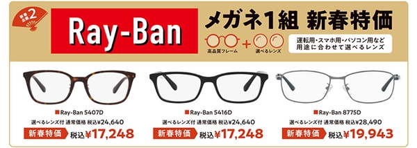 人気のレイバンフレームに、選べる高品質レンズが付いた新春特別企画!無くなりしだい終了となりますので、この機会に是非にお買い求めください!