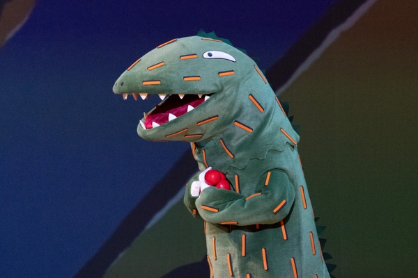 今回の公演は、『おまえ うまそうだな』と『きみはほんとうにステキだね』の2本のおはなしを上演。絵本の絵柄をそのまま立体化した、愛らしい恐竜たちがステージに登場し、暖かな世界観を作り上げる。物語の途中で歌が入ったり、映像を使ったりと、子どもたちも飽きずに楽しめる工夫も満載だ。物語と物語の間には、観客が好きな恐竜を答えるコーナーや一緒に参加できるクイズも。子どもたちの笑顔が弾ける時間となっている。