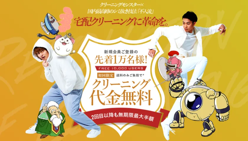 「不入流」クリーニングを無料で提供する宅配クリーニングサービス 「クリーニングモンスター」始動!初回1万名も無料に!! ~初回代金無料、2回目以降も 最大半額キャンペーンを同時スタート~