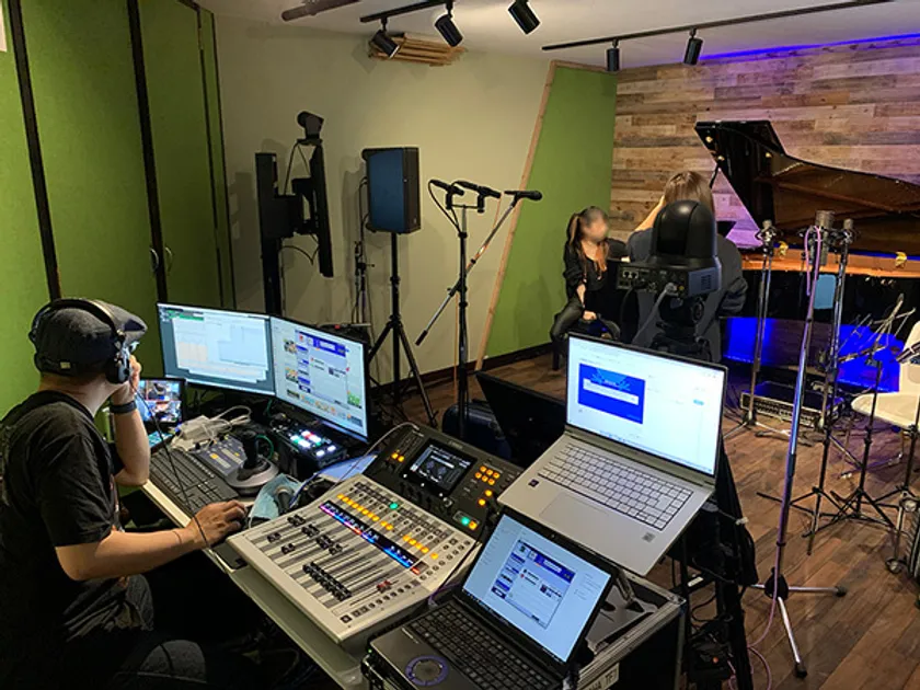 全室にオーディオインターフェース内蔵ミキサーを設置、スマートフォンとご自分の楽器だけで手軽に配信ができます。
