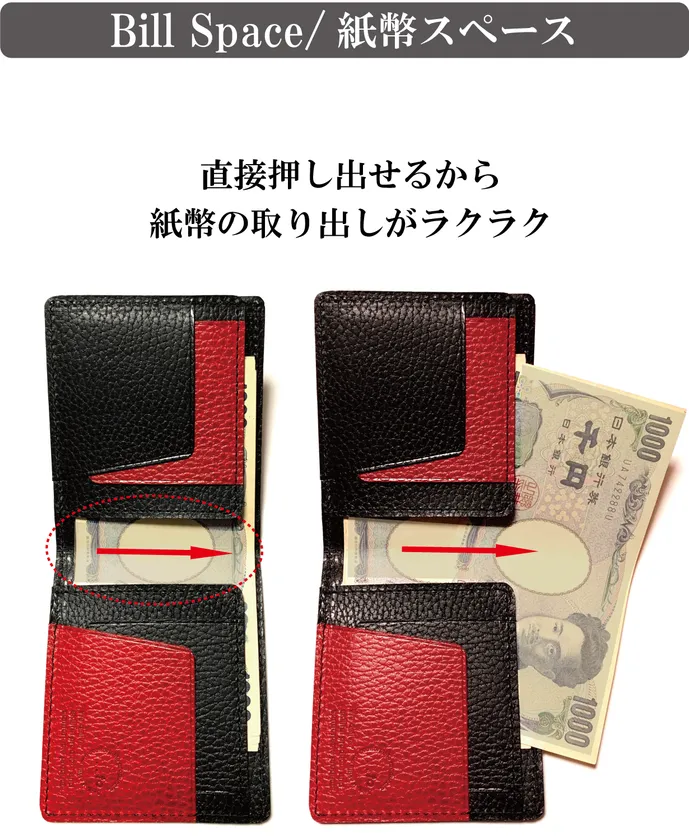 (1) 5mm厚で仕上げる職人技と計算されつくした設計で『薄さと美しさ』を兼ね備えた財布