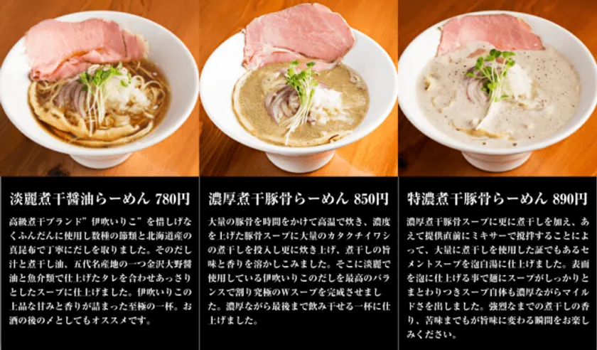 石川県金沢市 行列の絶えないラーメン店 「金沢濃厚煮干豚骨 伊乃心」 2種の新メニューと1種の期間限定ラーメンを発売! 計6種類の本格派ラーメンでバリエーション豊富に!!