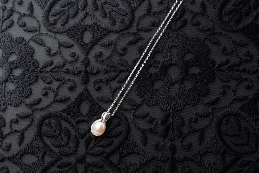 花びらを思わせる優しい曲線のシルバーに添えられた輝く真珠が清楚なイメージのペンダントです。フェミニンなポイントとしてカジュアルシーンにも合わせやすく、控えめなデザインはお手持ちのパールネックレスとのコーディネートも可能です。