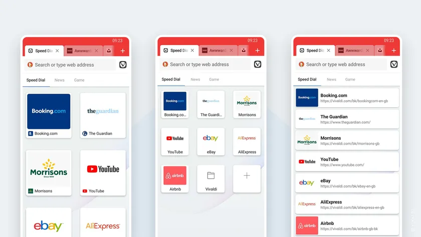 Android 5以上を搭載するスマートフォンとタブレット、Chromebook上のVivaldiでは、スピードダイヤルを拡張。より使いやすいレイアウトのスタートページを選べるようになりました。