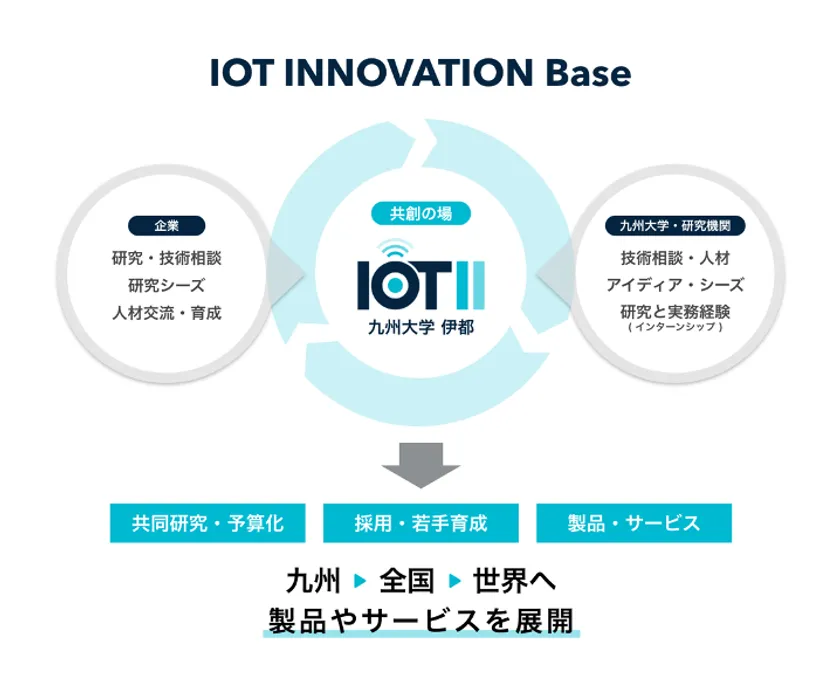 九州からIoTイノベーションを創出するための 新しい形の産学連携拠点(IOT INNOVATION Base)を、 地元企業を中心とする複数企業群で 九州大学・伊都キャンパス内に設立