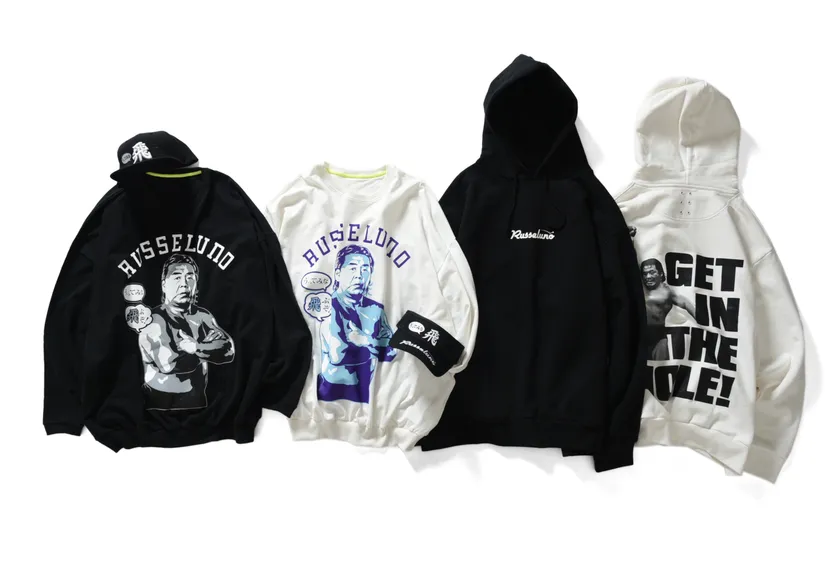 今回リリースされるアイテム達は、HOODIEのバックプリントに使われている長州力さんのフォトが撮影された90年代初頭のストリートファッションをバックボーンにした、ビッグシルエットのアパレルや、漢字グラフィックのヘッドギアなどのアイテムがラインナップ。
