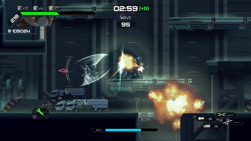 『ハードコア・メカ ファイターエディション』は、RocketPunch Gamesが開発したハイスピード2Dメカアクションゲームです。ロボットゲームが好きなファンにはたまらない、自由度の高いハイスピードなメカバトルが楽しめます。また過去には、東京ゲームショウやゲームメディアより数々の大賞を受賞。ユーザーの皆様に高く評価され、PS4版ではPSNで数週間にわたり連続一位という快挙を果たしています。