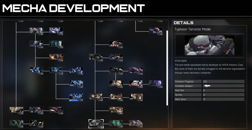 戦闘でゲットしたクレジットでプレーヤーの愛機を強化し、育てることもできます。いろんなメインウエポンと強化パーツで、メカの新しい可能性を見つけ出せます。