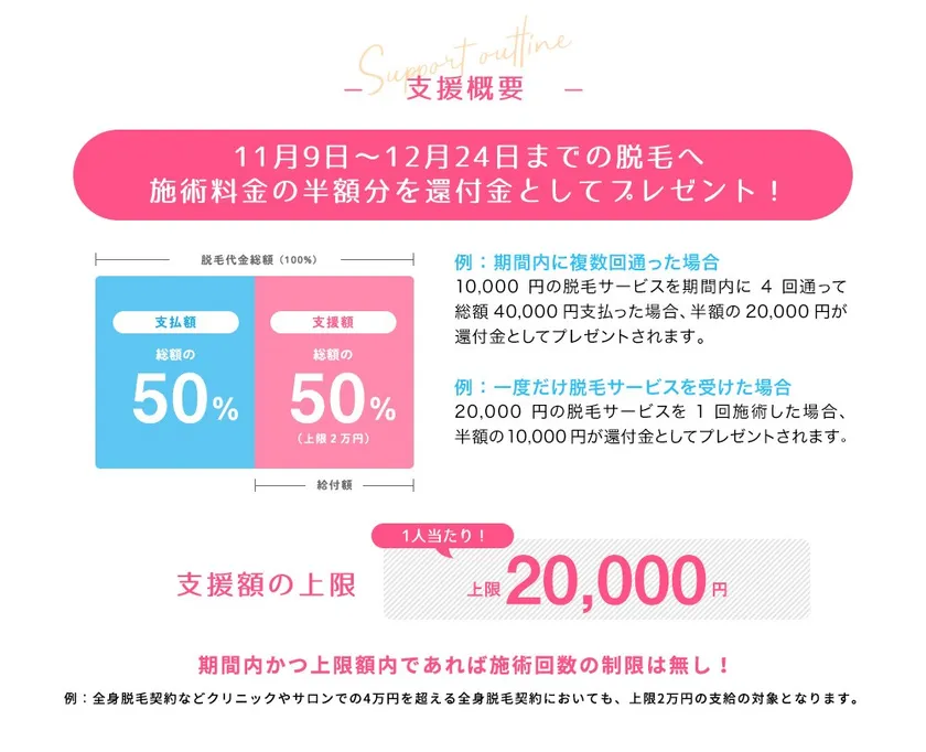 ~抽選で20名に、脱毛施術料金の半額分(上限2万円)の「還付金」をプレゼント!~
