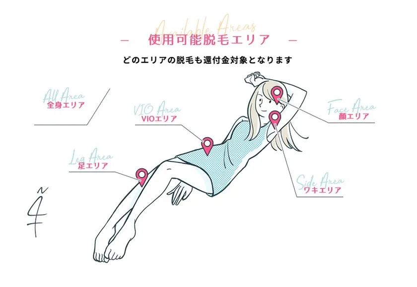 全国のサロンで、どこの脱毛エリアでもお使いいただけます。