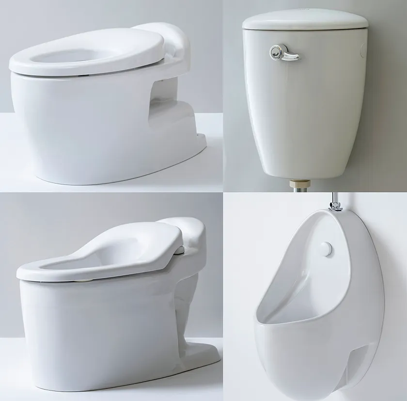 保育園、幼稚園、こども園などに設置するトイレシリーズ。便座形状を前傾させ、座るだけで自然と排泄しやすい姿勢が取れるスタイルを実現し、指を掛けやすいレバー形状など、人間工学的アプローチが採用されており、必然性のあるシンプルで美しいデザインである。メンテナンスのしやすさも向上させ、衛生管理の面でも非常に高い機能性を備えている。