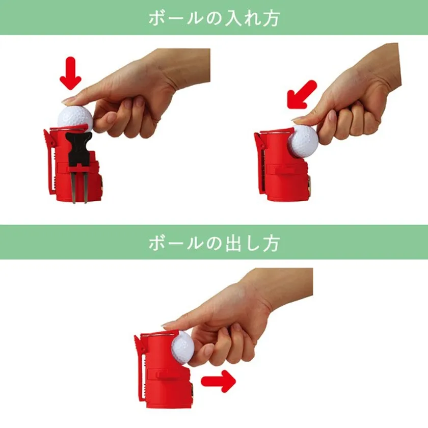 ファスナー式だとボールの取り出しに時間がかかってしまいますが、押すだけでさっと脱着できます。ボールも2個収納することができるので、なくしてしまっても安心です。
