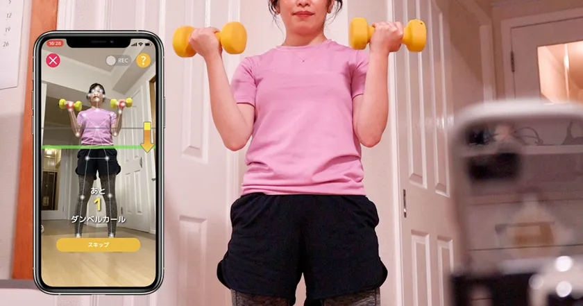 新たに2種のダンベル運動に対応!AIが自動カウントアップする スマホアプリ「家トレ」を10月15日バージョンアップ ~ダンベルカールとサイドレイズに対応! 動画撮影機能やシェア機能も追加~
