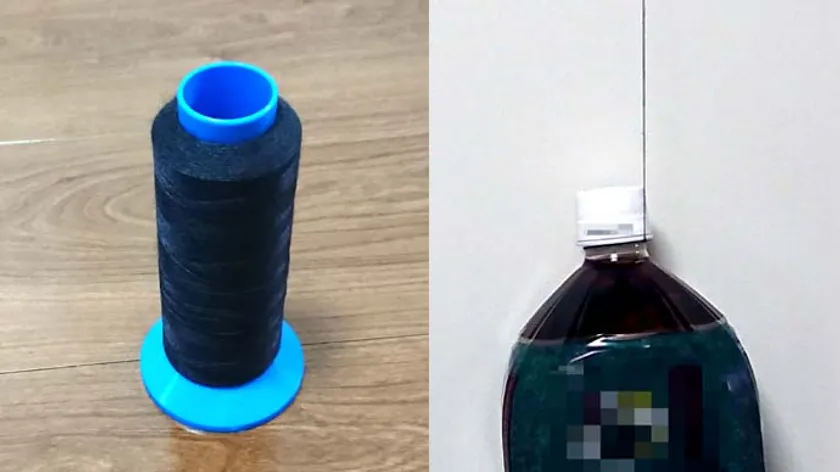 縫い糸はケブラーを採用。わずか一本の糸で2Lのペットボトルを引き上げられる強靭さです。