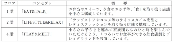 リニューアル後の専門店街の各階の概要は、次のとおりです。